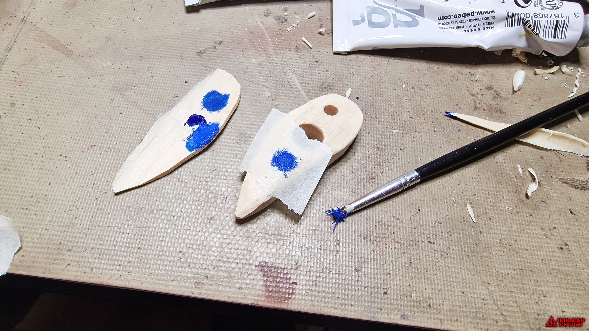 After mixing up the right shade of blue acrylic paint, the random blue